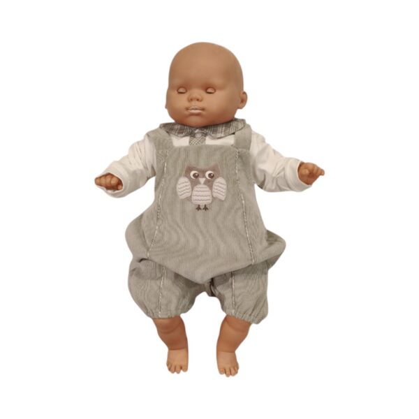 Salopette teto e tatta Neonato gufetto velluto millerighe intera 2pz. Cotone Panna-verde